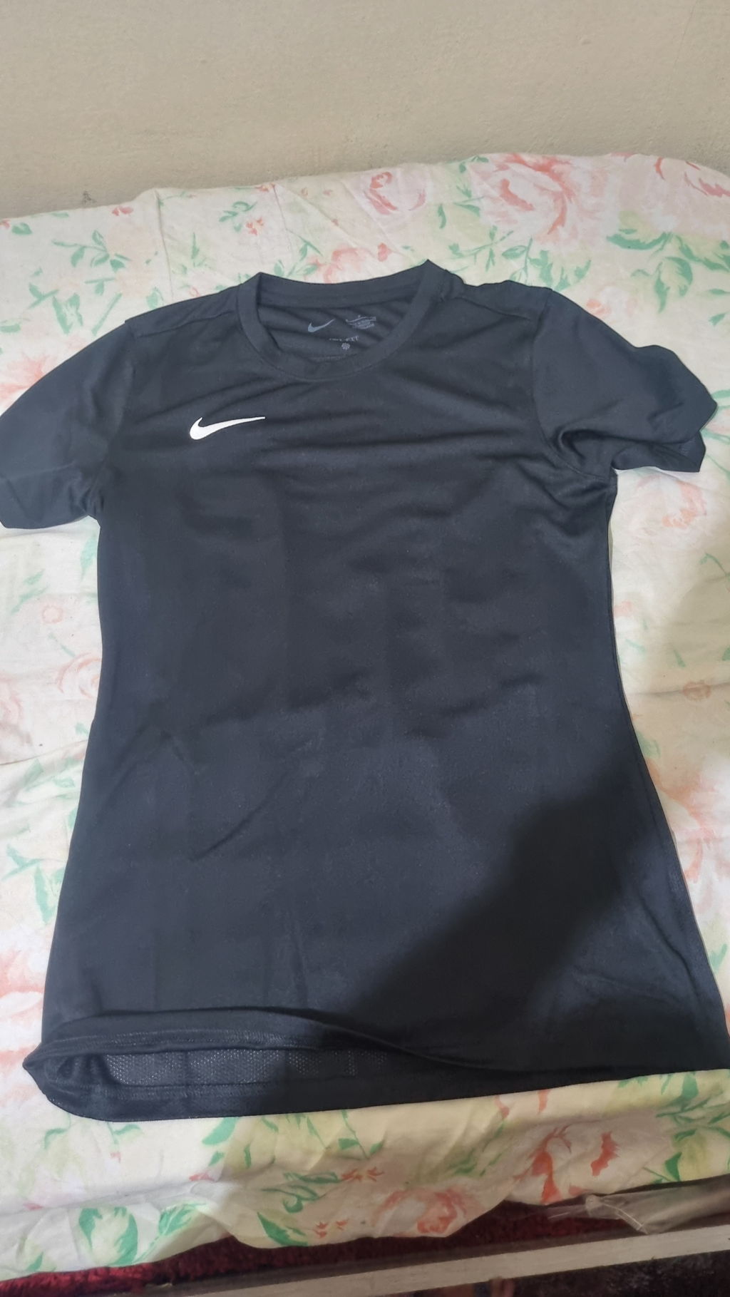 Camiseta de boa qualidade, símbolo da Nike bordado, atrás da camiseta o tecido não segura o suor, tenho 170 alt e 54 kg não ficou apertado, mas tbm não ficou largo, e comprida e tecido ajuda a transpiração.