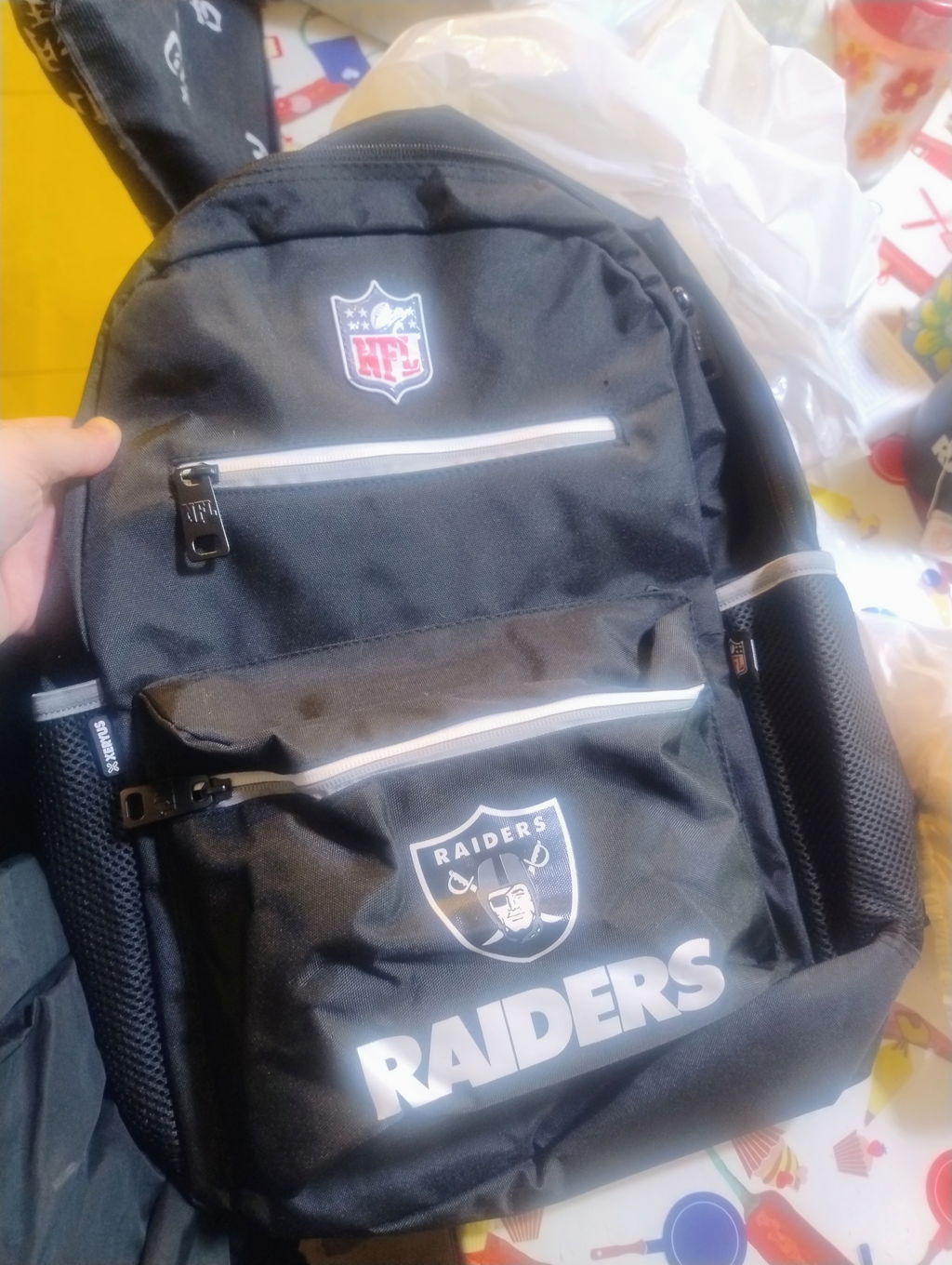 Adorei o produto . A mochila realmente é muito bem acabada. O zíper é bom , a impressão do logo do Raiders é incrível. O logo NFL é emborrachado, as redinhas laterais para garrafas d eagua , ótimas. Único porém seria o tamanho da fita de regulagem que precisaria ser 6 centímetros maior para uma melhor regulagem . Porém nada que desabone, compraria novamente e recomendo.