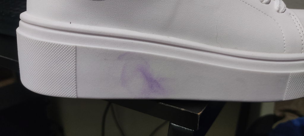 Chegou antes do prazo, porém veio com uma mancha lilás, não sei oq seria.